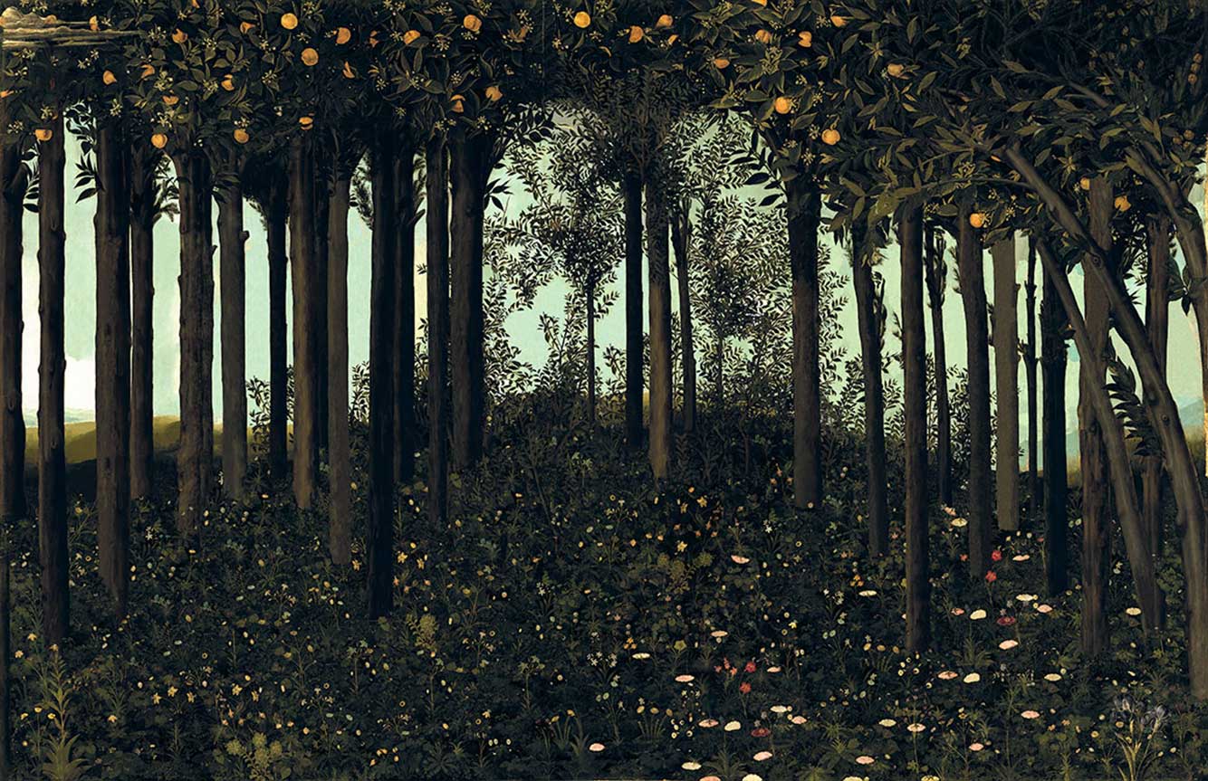 Algunos de esos paisajes tomados de composiciones esenciales (Botticelli, Giotto; a este último le brinda una instalación de cinco grandes lienzos), y también imágenes ajenas a ellos con las que comparten motivo, el del árbol constante y universal, forman parte de la última exposición de este autor, organizada por la Fundación Enaire, comisariada por Lola Durán y abierta, hasta el próximo septiembre, en las Naves de Gamazo de Santander. Se titula «De arboris perennis» y constituye un tributo a la naturaleza, un recuerdo de nuestra necesidad de ella, aunque a menudo en el medio urbano se pierda conciencia, y también una muestra de respeto hacia su belleza y su poder evocador: sea real o tomada de célebres pinturas, esta vegetación invita a la reflexión y el silencio, sugiere misterio y no deja de suponer uno de los escenarios más idóneos, incluso sobre papel fotográfico, para la conexión con la intimidad propia y con la ajena.